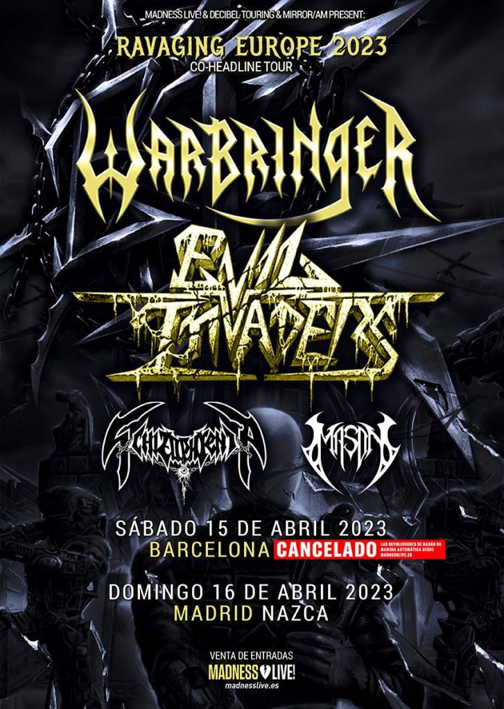 La Semana Santa terminó, a lo cual la tranquilidad regresó a España como agua de Mayo, pero poco duró. Chirriantes sonidos de cortes metálicos, chipas y música extrema azotaba Europa entre cristos y vírgenes. Para fortuna de la cultura metalera, Madness Live! se ofreció a revertir la religión en un ambiente thrasher de calidad con la destructora gira conjunta de Evil Invaders y Warbringer por Madrid, quienes estarían acompañados por Schizophrenia y Mason para ejecutar una exaltación de la thrashería old school y moderna en cualquiera de sus vertientes.