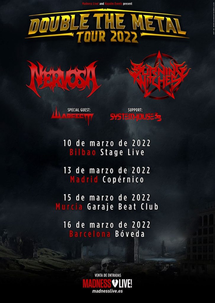 El mismo fin de semana donde Hueso Producciones nos trajo la gira de Artillery en su Iberian Tour, Madness Live! hizo lo mismo con otro festival, cambiando la localización a la sala Copérnico en Madrid. Bajo el título Double the Metal, tres bandas se darían cita en un evento thrasher de alta alcurnia. Desde Brasil, Nervosa vendrían presentando nuevo disco y formación. Señalando hacia América, Warbringer nos traerían su último álbum con raíces clásicas. Por último, Warfect arrimaría desde Suecia con un thrash raudo y agresivo que nadie querría perderse. Por cuestiones médicas y a quienes deseamos una pronta recuperación, Warbringer canceló su actuación, a quienes le sustituyeron las sorprendentes Burning Witches y un invitado asiático de última hora, Systemhouse33, trayéndonos un thrash/groove novedoso desde la India. Debido a descuadres horarios y guardias hospitalarias, no llegamos al concierto de éstos últimos. No obstante, las respuestas y sentencias de los más madrugadores nos evidenciaron un sabor de boca tremendo sobre la banda india, a los cuales nos hubiera gustado ver y disfrutar desde el primer momento.