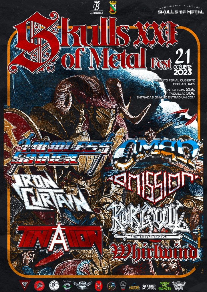 A pesar de las desavenencias, trabas y obstáculos por el camino, Jaén volvió a acoger una nueva edición del legendario festival Skulls of Metal. Celebrando su vigésima primera edición y sin perder su estado de cita obligada en el mundo metalero, un gran cartel evidenció el triunfo que jamás se perdería en el ámbito nacional. Con algunos cambios, caídas de bandas y repuestos de lujo, varias asociaciones culturales apoyaron al festival con todo su ser, siendo el resultado más que notorio y logrando otro éxito irrepetible a base de las mejores bandas nacionales e internacionales.